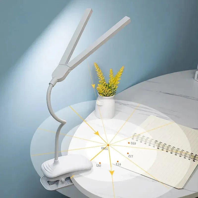 Lampe de Lecture Double Tête élégante et rechargeable, pour un éclairage modulable, doux et raffiné.